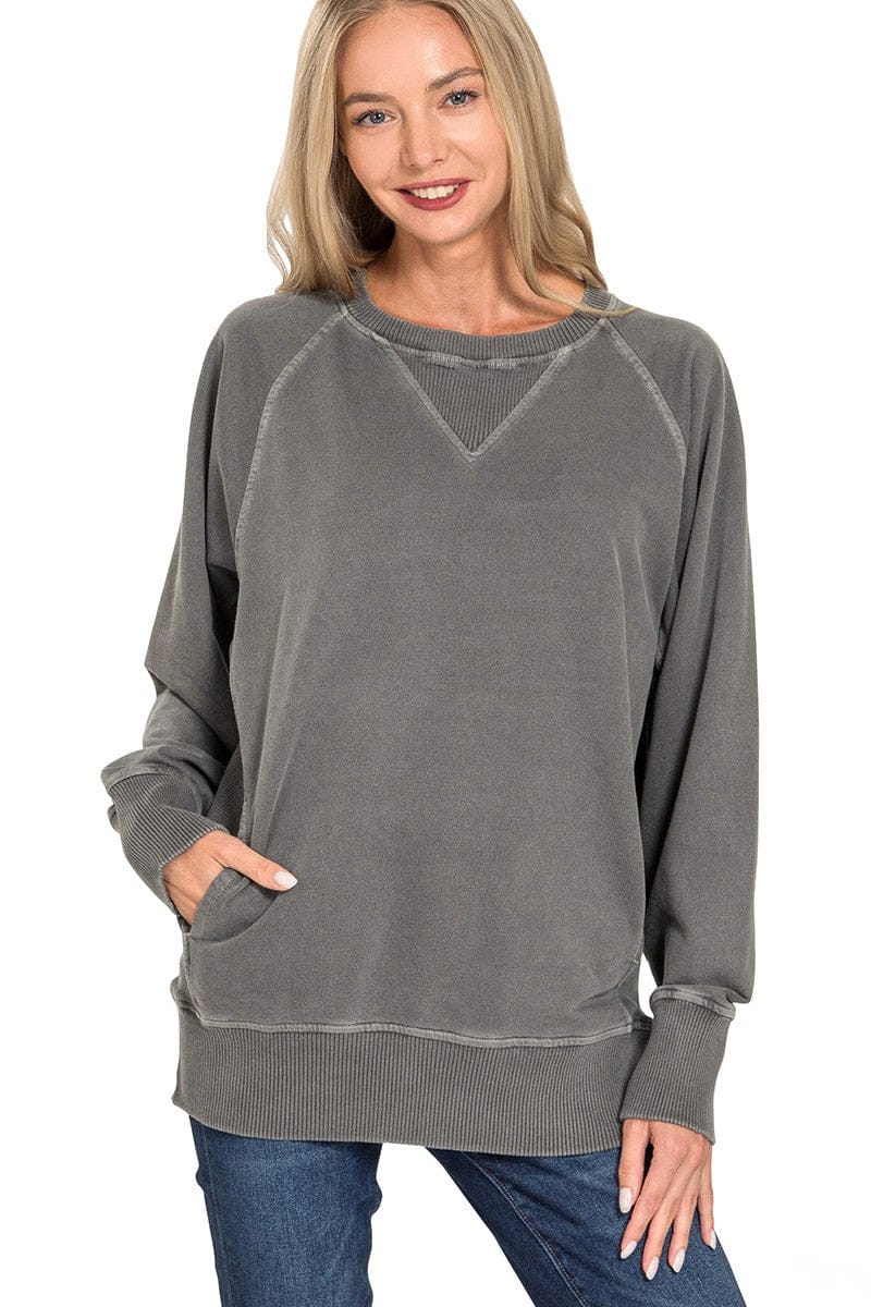 Zenana Pigment Dyed French Terry Pullover with Pockets