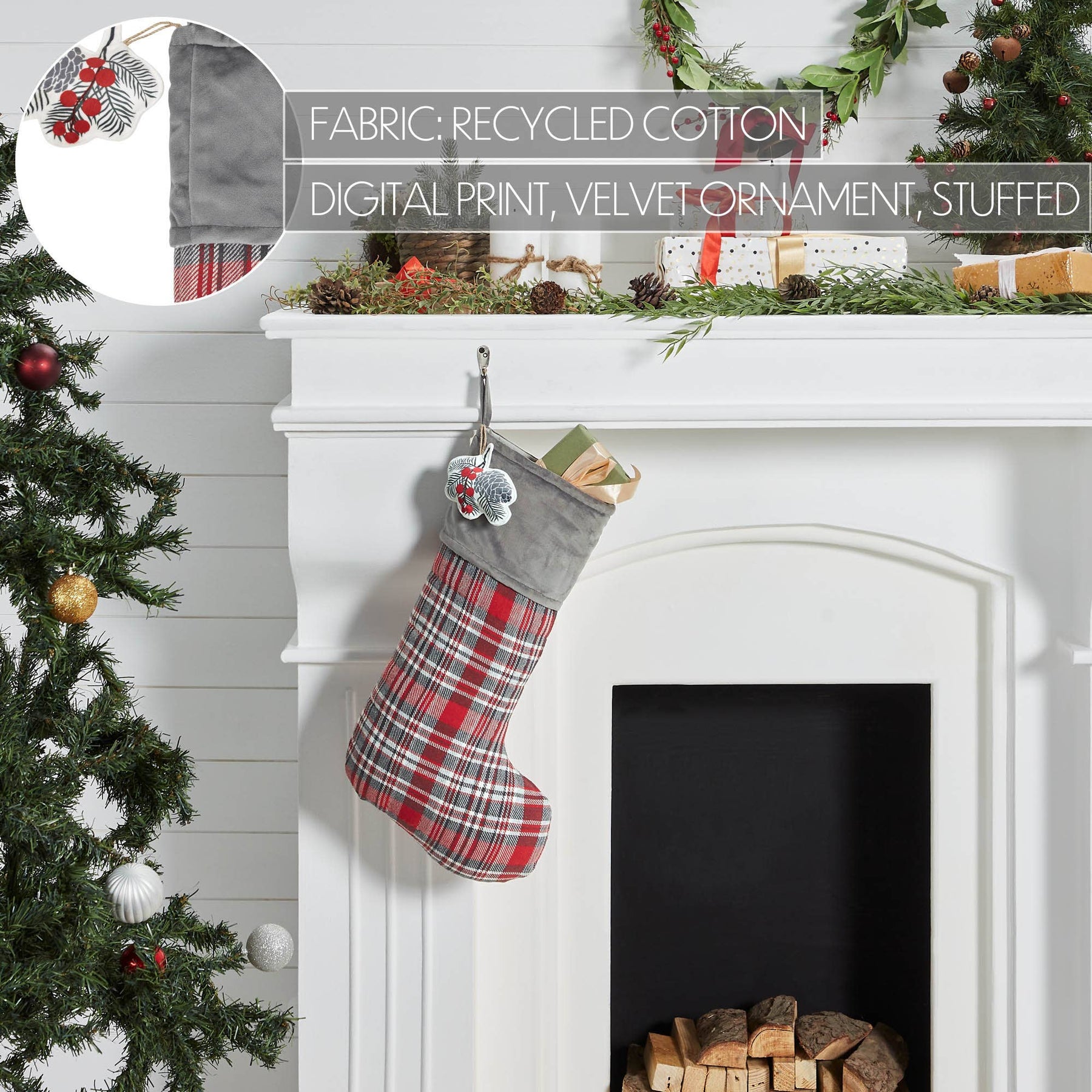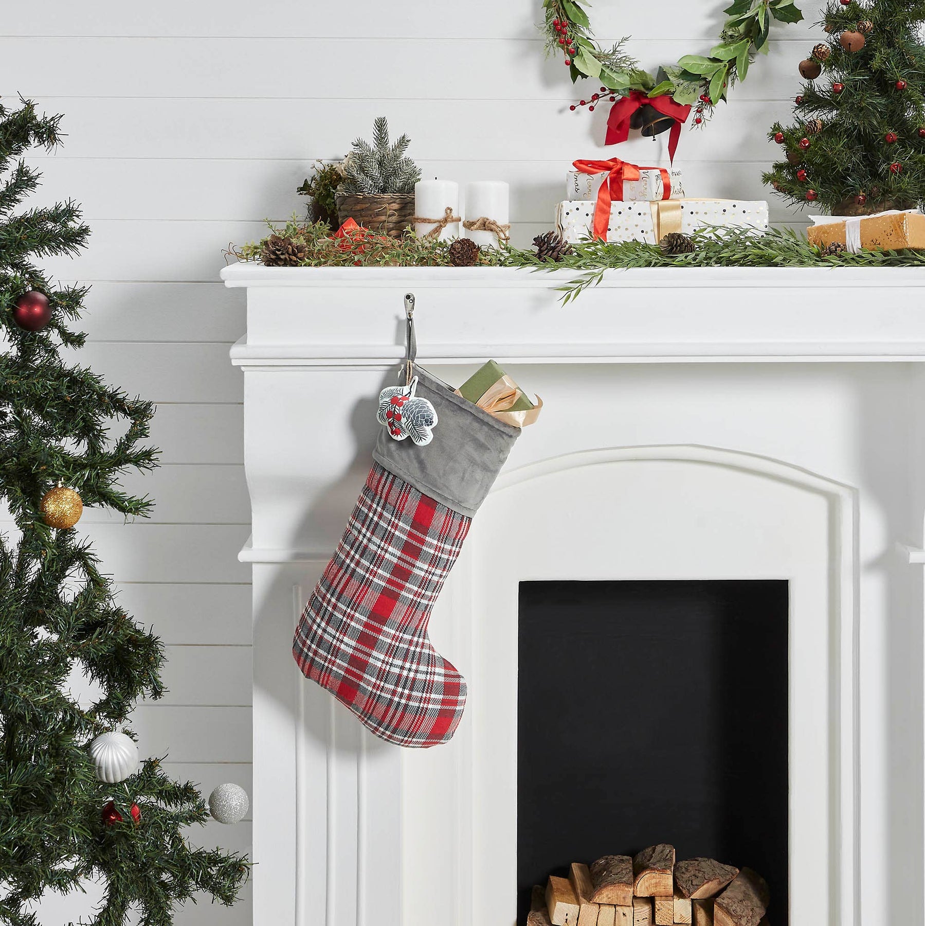 Nothing sets the tone for your holiday decorations quite like your choice of a Christmas stocking. Craft a perfectly timeless style for your home with the Gregor Plaid Stocking. The classic holiday stocking measures 12x20 inches and features a quilted, 100 percent cotton base. A non-quilted cuff in neutral grey adds contrast to the classic red, grey and thyme green tartan plaid body. Includes loop to easily hang by the chimney with care.