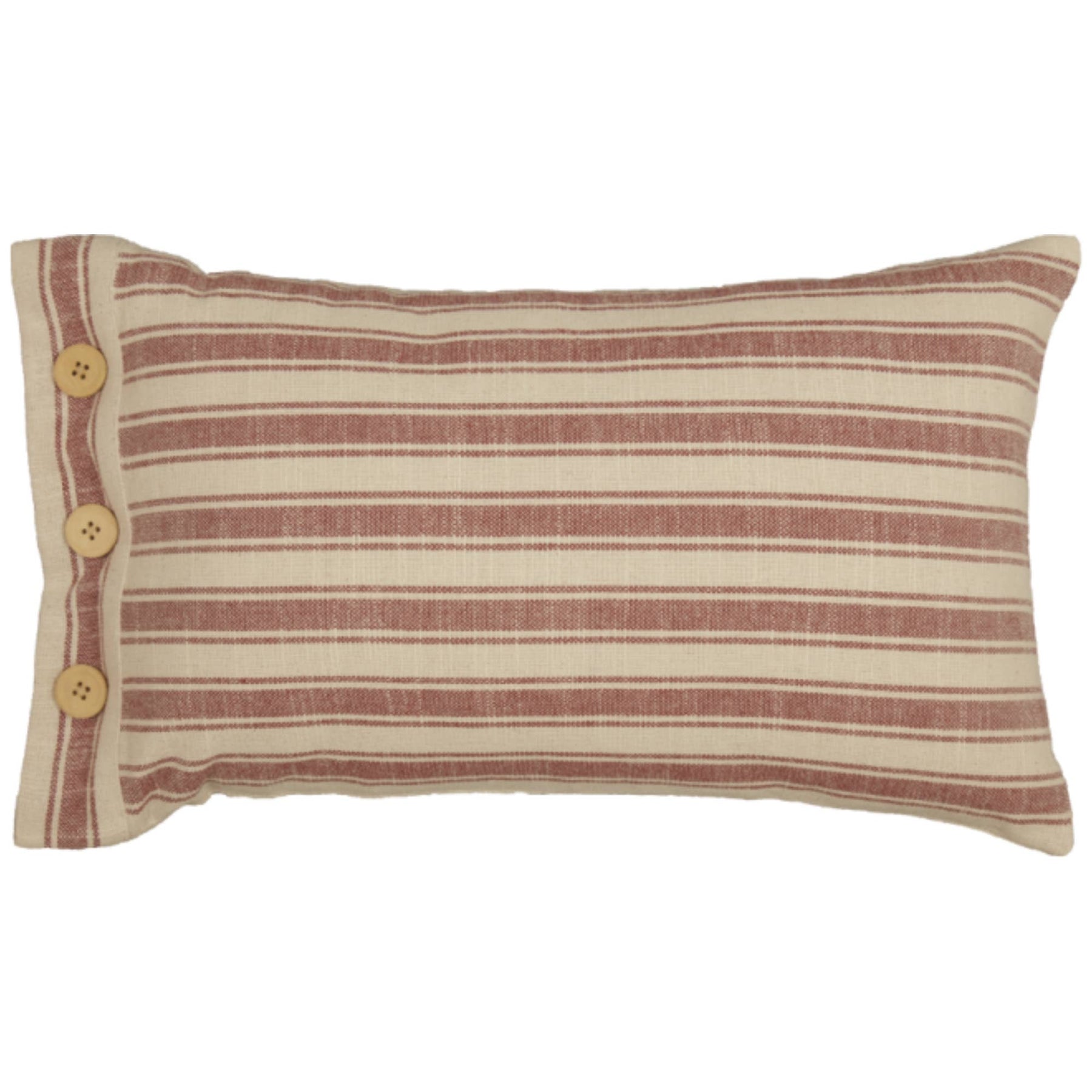 Remember the comfort of grandma's farmhouse? Recapture that warmth with our Market Place Red Pillow Cover. At 21 inches long and 12 inches wide, it's just the right size to curl up with. The cozy 100% cotton fabric feels just like home, and the charming end opening, secured with three sturdy buttons, harkens back to simpler times. The red grain sack stripes on a creme base evoke a nostalgia for those long summer days spent on the farm. And the best part? It's machine washable and iron safe, because we believe in blending the charm of the old with the convenience of the new. Its soft red and creme colors bring a Farmhouse and Cottage style that works in any home. And the slub weave adds a texture that's delightful to touch. The button closure ensures your pillow stays snug, while the reverse side offers a playful striped pattern in red and creme, for when you want to mix things up a bit. Isn't it time you brought a piece of that farmhouse charm into your home?