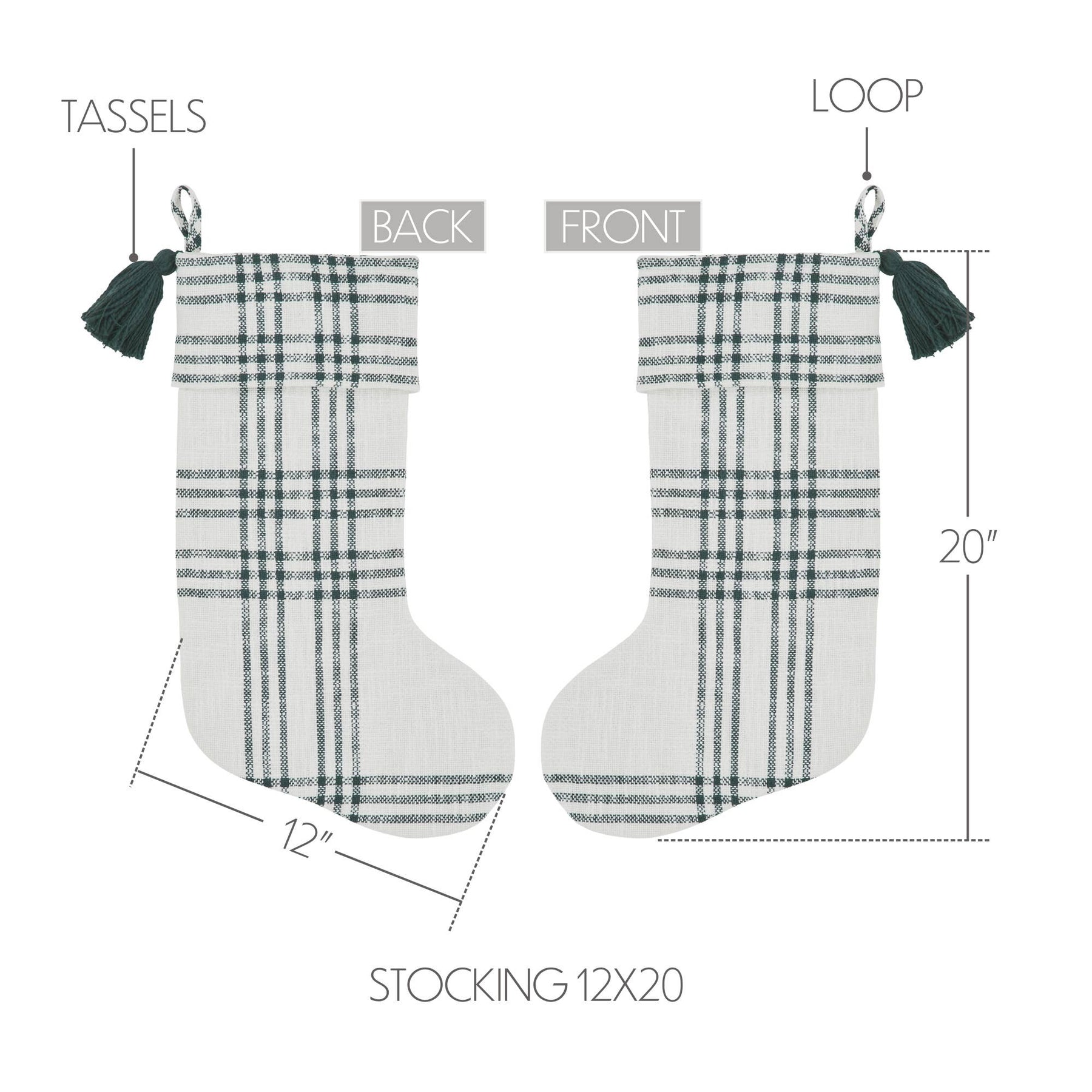 Add modern style to your Christmas traditions with the Pine Grove Plaid Stocking. A crisp white base with pine green stripes will add simple, sophisticated style for a perfect farmhouse Christmas look. Easily hang with the attached loop. The elegant Christmas stocking is made for yearly use with a cotton base and flannel lining. Pair with matching tree skirts for a complete, festive holiday look. Includes: 1 x Stocking Care Instructions: Spot Clean Material: 100% Cotton Shell, Cotton Flannel Batting