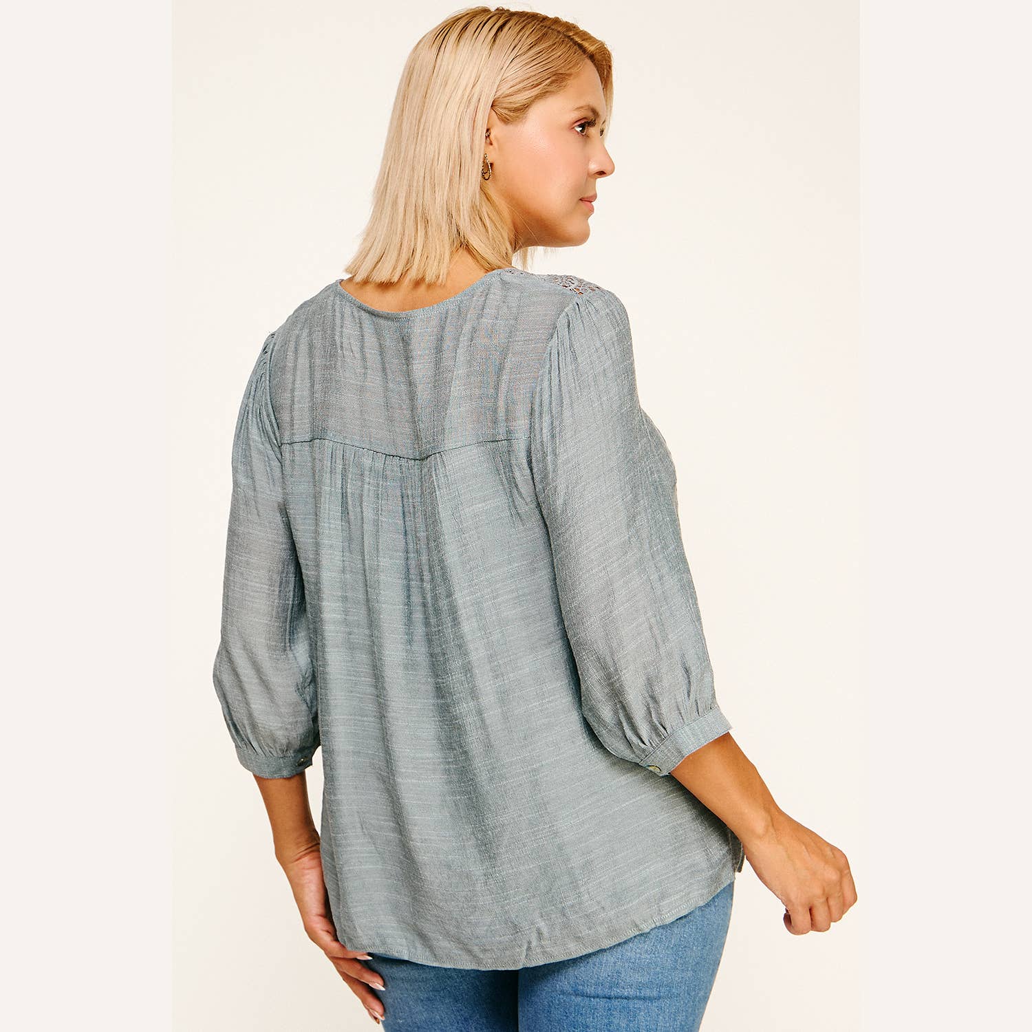 PEASANT BLOUSE W/APPLIQUE YOKE